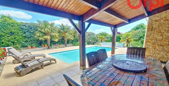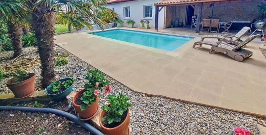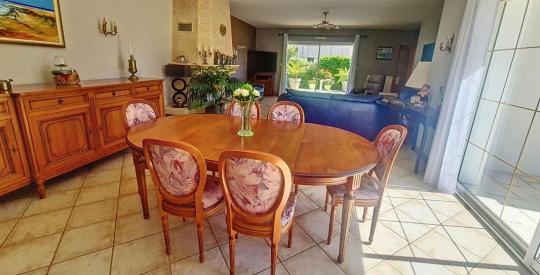 C'est entre le bourg et Bourgenay, que vous tomberez sous le charme de cette propriété édifiée sur plus de 1900 m2. Elle vous offre une grande pièce de vie exposée sud avec insert, une cuisine entièrement aménagée et équipée, 4 chambres dont une suite parentale avec une grande salle de bains de plus de 9 m2 , un bureau, 2 wc, une salle d'eau, une belle lingerie vient compléter la surface habitable de plus de 199 m2, le garage de 42 m2 avec faux grenier vous permettra de mettre vos véhicules à l'abris!! Vous profiterez au quotidien d'un magnifique parc arboré avec piscine chauffée et d'un porche pour déjeuner à l'ombre. Située au calme , cette superbe propriété à tout pour elle!!! Rare dans le secteur.
