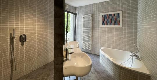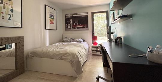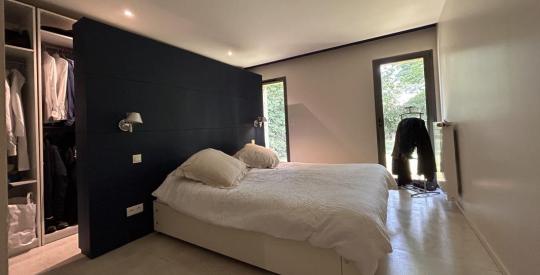 Le coin nuit se compose de 3 chambres dont une suite parentale (dressing et salle d'eau) et une salle de bains. Une chambre supplémentaire se trouve à l'entrée de la maison.
