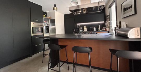 Son espace cuisine moderne ouvert sur la pièce de vie est attenante à la buanderie et au garage.