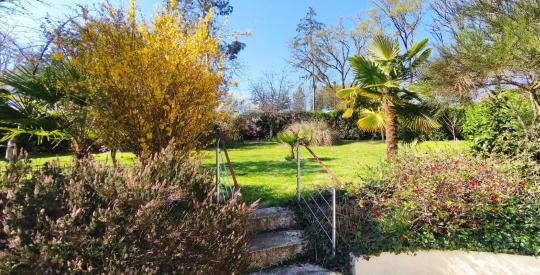 Le jardin de plus de 1 000 m², agrémenté d'un cabanon, offre un véritable havre de verdure pour se détendre, jardiner ou organiser des moments conviviaux en famille.