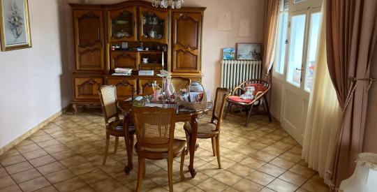Maison construite en 1957, sur 3 niveaux, chauffée au gaz de ville avec une chaudière récente. Elle comprend : en rez-de-jardin : garage, chaufferie, wc, salle d'eau, cave, porte d'accès au jardin, cuisine d'été (non aménagée), chambre avec lavabo. Au 1er étage (accès depuis la maison ou par 2 escaliers extérieurs également): entrée, cuisine aménagée avec placard, bow-window, couloir de dégagement, salon/salle à manger avec loggia, salle de douche, wc, chambre. Au 2ème étage (chauffage électrique pour ce niveau): palier desservant salon/salle à manger avec cheminé, petite cuisine aménagée, salle d'eau, wc, 2 chambres, dégagement avec placards dont l'un donne accès au grenier.