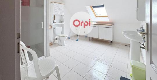 salon-séjour-cuisine de 53 m², 2 chambres, dégagement placard, WC, Salle de bain + douche, WC, vaste garage avec grenier.