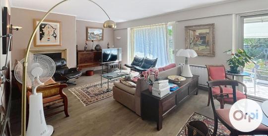 **PIÈCE DE VIE LUMINEUSE :** Séjour/salon de 37m² avec cheminée, ouverte sur la cuisine et sur une terrasse exposée au Sud.