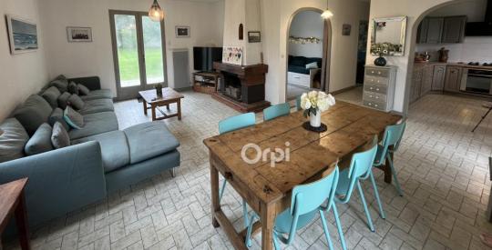 Au rdc : un séjour avec cuisine donnant sur une terrasse avec barbecue, a l'étage deux chambres dont un dortoir de 23m², une salle d'eau avec wc. Un garage de 24 m² et un appenti de 33m².