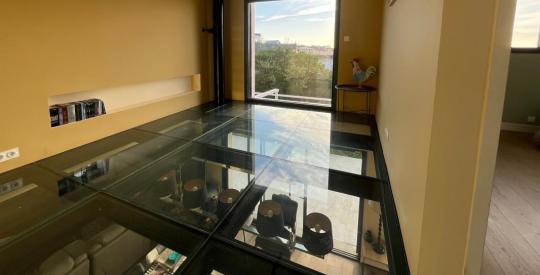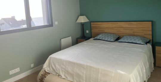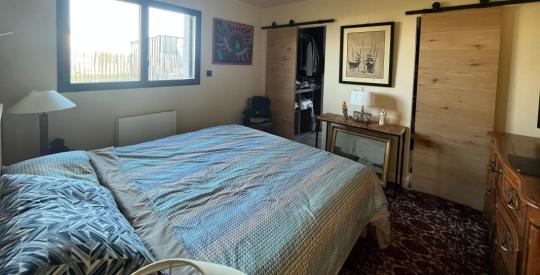 A l'étage : Deux belles chambres avec chacune vue mer, un pièce bureau sur plancher de verre située plein sud.