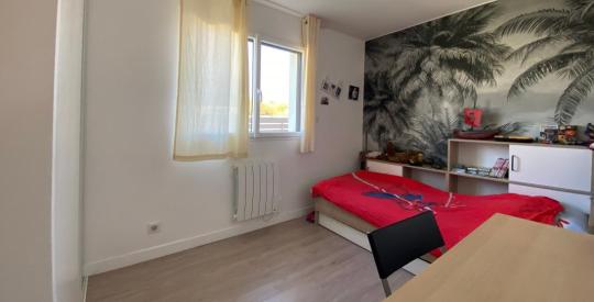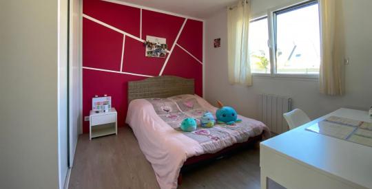 Située dans un quartier calme a proximité des écoles et des commerces elle se compose d'un hall d'entrée desservant une très belle pièce de vie (avec poêle à granules) ouverte sur la cuisine aménagée-équipée donnant accès à une belle terrasse bien exposée et sans vis à vis.