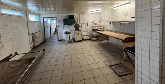 En rez-de-chaussée, deux locaux commerciaux (anciennement bar et boulangerie) et au sous-sol un grand espace de stockage.