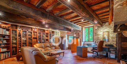 Propriété de caractère, (XIV – XXème siècle), 361 m2, entièrement rénovée, divisible en trois logements indépendants, bâtie en pierres apparentes sur son parc de 4 hectares.