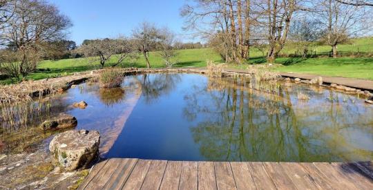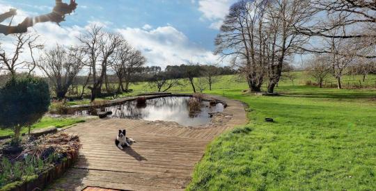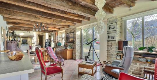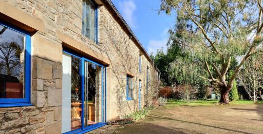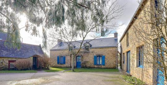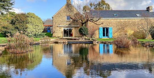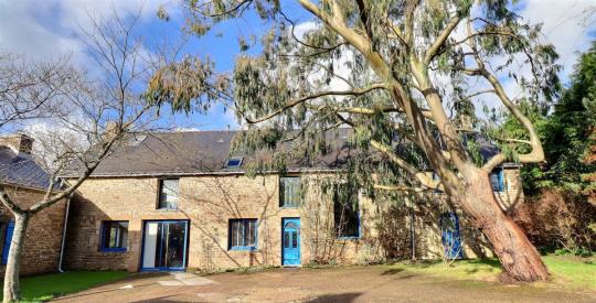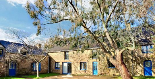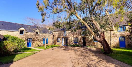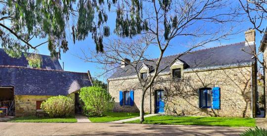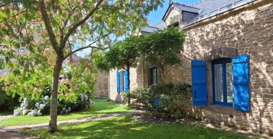À l'extérieur, la propriété bénéficie d'une belle cour à l'avant des maisons, agrémentée d'un majestueux eucalyptus, d'un arbre à soie, d'une superbe glycine et de magnifiques hortensias qui renforcent le charme breton de l'ensemble. Le jardin, arboré et généreux, comprend également plusieurs pommiers. Une piscine naturelle avec bassin de lagunage, rechargée grâce à une pompe reliée à la nappe, vient parfaire ce cadre de vie exceptionnel.