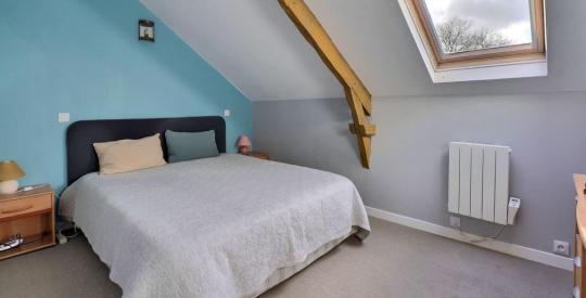 La seconde maison (photos 16 à 21), totalement indépendante, offre environ 100 m² Loi Carrez (120 m² au sol). Elle dispose d'une pièce de vie chauffée par poêle à bois ainsi que par pompe à chaleur air/air réversible. L'étage dessert trois chambres et une salle de douche. La toiture de cette dépendance est neuve. Cette dépendance est idéale pour un projet de location saisonnière type Airbnb, pour l'exploitation en chambres d'hôtes ou pour accueillir famille et amis en toute indépendance.