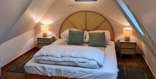 Le gîte attenant, véritable plus pour accueillir ou générer un revenu saisonnier, comprend une pièce de vie avec cuisine au rez-de-chaussée, et à l'étage une chambre avec salle d'eau et WC indépendant.