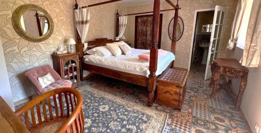 Derrière les murs de sa cour enclos, la propriété déploie environ 300 m² habitables, incluant la maison principale et un gîte indépendant accolé mais totalement autonome. L'ensemble se compose de 6 chambres et 4 salles de bain, dont plusieurs suites avec salle d'eau privative, également habitable de plain-pied, pensées pour le confort et la sérénité.
