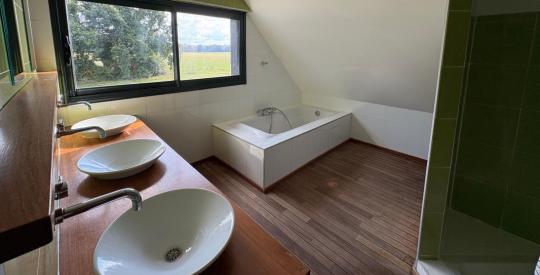 Pensée pour le bien-être, la maison bénéficie d'un système de chauffage au sol par géothermie, alliant performance énergétique et respect de l'environnement. Une salle de sport vient parfaire cet ensemble.