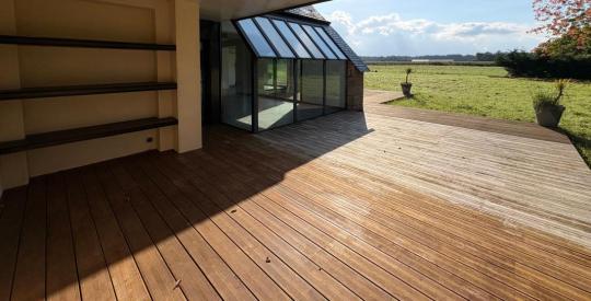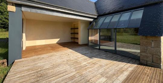 Les extérieurs constituent un véritable havre de paix. La propriété dispose d'un carport de 48 m² environ, d'une terrasse ouverte et couverte conçue comme un salon d'extérieur, et d'un vaste terrain piscinable. Ce cadre naturel verdoyant est idéal pour profiter en toute sérénité des beaux jours.