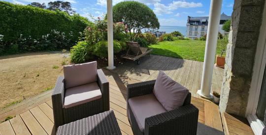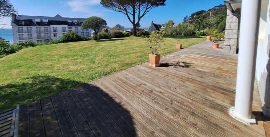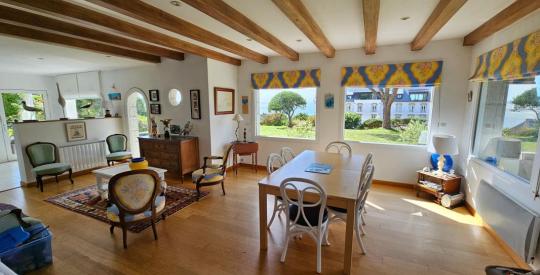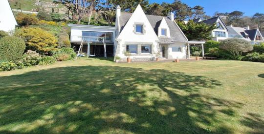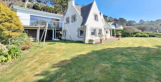 Vos agences ORPI LE VOT et ORPI TREGORIMMO vous présentent en exclusivité cette propriété de caractère située à proximité immédiate de la plage de Tresmeur. Vous appréciez l'alliance du charme de l'ancien et le confort du contemporain apporté par l'extension édifiée en 2007 sur pilotis. La propriété est bien agencée, s'étend sur près de 211 m² et dispose de 6 chambres, deux salles de bains, deux pièces de vie, deux cuisines ce qui en fait un lieu idéal pour accueillir famille et amis sans se déranger. Son exposition Ouest et sa position dominante offrent un panorama unique sur la mer et sur les couchers de soleil qui sauront vous séduire. Vous profiterez également de ses extérieurs, ses terrasses, un jardin d'environ 2 140 m² arboré, un carport pour stocker les indispensables : kayak, paddle, vélos ainsi qu'un cabanon fermé.
