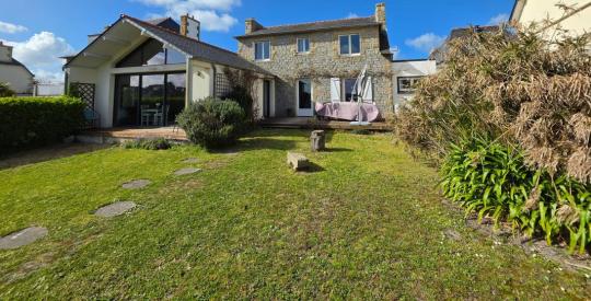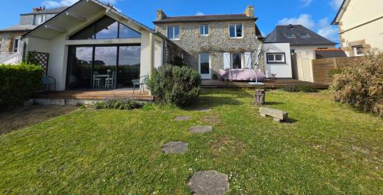 Venez découvrir en exclusivité cette propriété vue mer située sur l'ILE-GRANDE, à proximité immédiate de la plage et à 500 m port Saint-Sauveur, venez découvrir cette charmante propriété des années 20 en pierre de taille d'environ 146m² face à la mer. Vous apprécierez son extension (réalisée en 2011) qui lui confère un côté contemporain, charme et élégance. Au rez-de-chaussée : une entrée, un salon-salle à manger avec un poêle à bois, une cuisine aménagée et équipée, deux chambres, une salle d'eau, WC indépendants ainsi qu'un débarras. À l'étage : un palier desservant deux chambres et une lingerie. Une terrasse exposée plein SUD. Un jardin arboré entièrement et clos. Le Dpe est en cours d'actualisation.