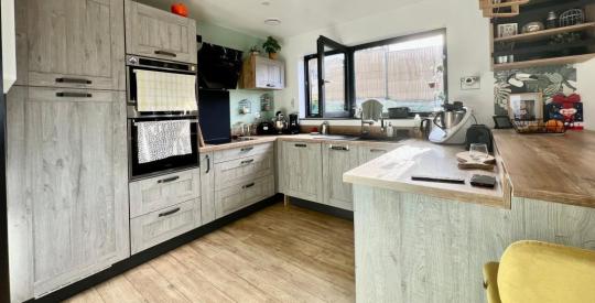 - elle propose un salon-séjour lumineux ouvert sur une cuisine moderne aménagée et équipée, ainsi qu'une buanderie pratique attenante.