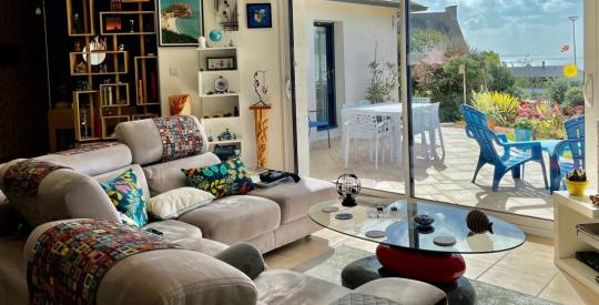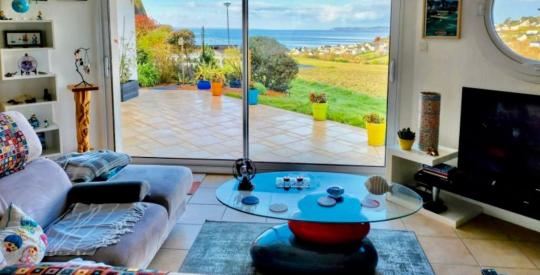 TELGRUC SUR MER Maison T5 de plain pied contemporaine de 2008 vue mer panoramique.