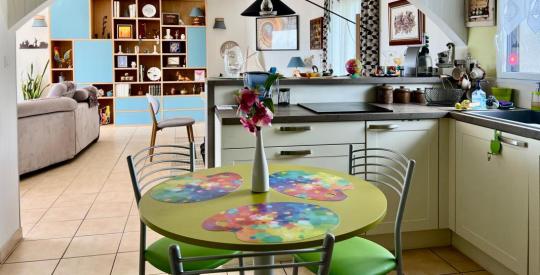 Située à proximité de la plage de trez bellec elle est composée d'une pièces de vie lumineuses et traversante ouvert sur la cuisine aménagée, 3 chambres, salle de bain avec douche et baignoire.