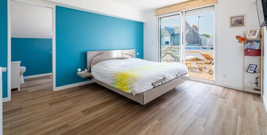 Une très grande suite parentale avec salle d'eau et dressing, donnant sur une magnifique terrasse de 30 m² plein sud