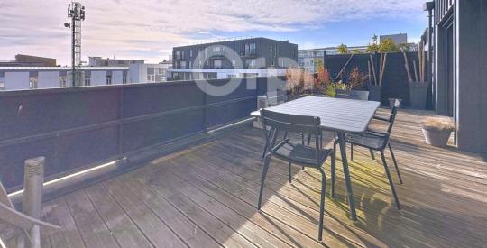 Ce bien atypique de 114 m², situé au dernier étage d'un immeuble bien entretenu, séduit par sa luminosité, son agencement fonctionnel et sa terrasse rooftop exceptionnelle d'environ 80 m², offrant une vue dégagée sur les toits de Brest.