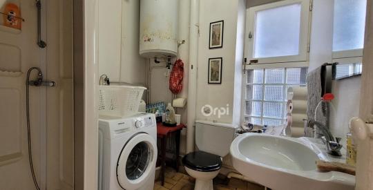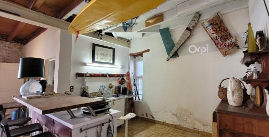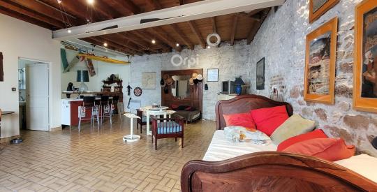 Au rez-de-chaussé, l'ancien garage avec coin cuisine, salle d'eau avec WC, pourrait se transformer en appartement indépendant.