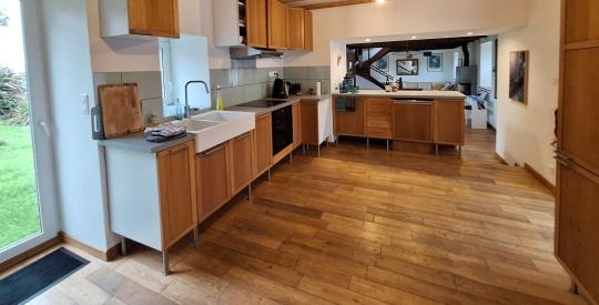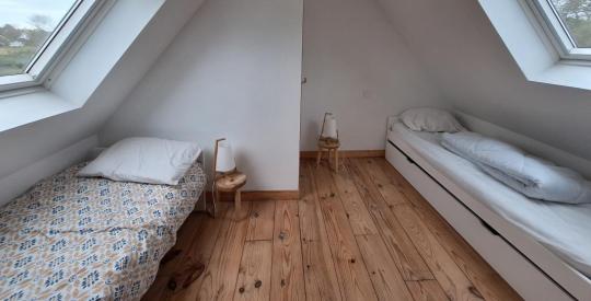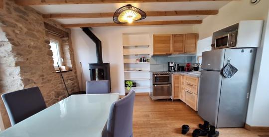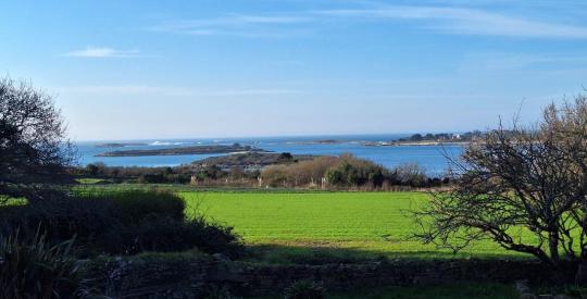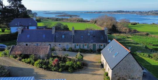 Vue mer imprenable de cette belle propriété en pierre du 17e siècle comprenant une longère et un gîte pouvant accueillir jusqu'à 11 couchages au total. A 5 min de la plage à pied par un petit sentier. La longère d'env 140 m² habitables se compose au rez-de-chaussée d'une entrée, une cuisine aménagée ouverte sur la salle à manger, un salon avec poêle à bois, une chambre, une salle d'eau avec Hammam, WC et une chaufferie. A l'étage, 4 chambres sous pentes dont une grande chambre et une salle de bains avec WC. Le gîte d'environ 50m² habitables, rénové en 2018, se compose au rez-de-chaussée d'une entrée sur le séjour-cuisine aménagée, une salle de bains avec WC et à l'étage 2 petites chambres sous pentes. Terrasse vue dégagée sur la mer et les champs et sans vis à vis ! Une cour intérieure sépare les deux bâtiments, permettant de stationner facilement. Petite dépendance sous tuiles rouges, entourée d'un espace paysagé et d'un muret en pierre. Puits utilisé. Garage indépendant. Poulailler attenant. Bâtiments sous tôle permettant d'abriter des voitures ou autres. Rare sur le marcher, n'attendez plus pour visiter !
